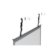 The set includes: rail, wall mounting brackets, mounting bracket cover, sliding tabletop mounting brackets, locking rack.
