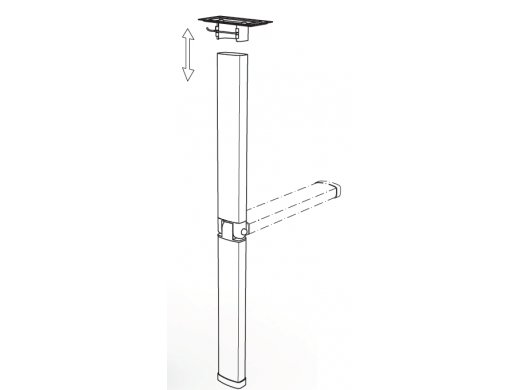 Ein äußerst solides Bein für den Einsatz in Wohnmobilen und Wohnwagen, hergestellt aus stranggepresstem, eloxiertem Aluminium. Es ist eine solide Basis für die Montage einer Tischplatte. Es verfügt über ein Scharnier, mit dem das Bein halb hochgeklappt werden kann. Darüber hinaus kann das Bein vom Scharnier abnehmbar. Das Scharnier besteht aus druckbehandeltem Gussaluminium und die Basis der Tischplatte besteht aus einer verzinkten Stahlplatte, was die Struktur äußerst langlebig macht.