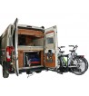 Ein bekanntes Problem beim Umbau von Transportern zu Wohnmobilen ist die Suche nach einem passenden Fahrradträger. Der an der Anhängerkupplung montierte Fahrradträger verriegelt die hinteren Türen, wenn Sie sie öffnen müssen. Hintertürträger weisen eine Reihe von Einschränkungen auf: Sie sind nicht für E-Bikes geeignet, sie erfordern die Montage der Fahrräder in großer Höhe, sie können nur zwei Standardfahrräder transportieren und sie verursachen bei längerem Gebrauch dennoch Schäden an Türen und Scharnieren .