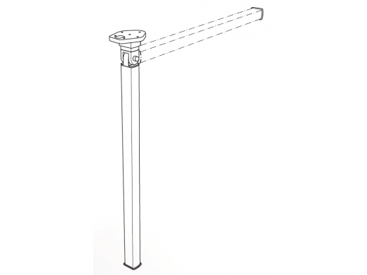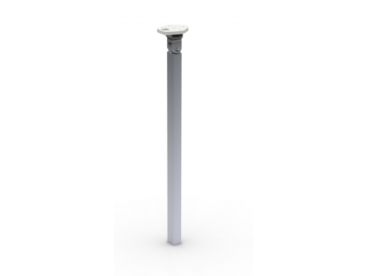 The leg is intended for use in campers and caravans. The leg is made of extruded, anodized aluminum and constitutes a solid base for mounting the table top. It has a hinge located under the table top mounting base, which allows the leg to be folded just under the table top, making it easier to move and store the table.
