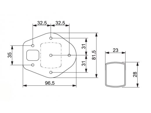 • dimensions of the base for mounting the tabletop: 96.5 mm x 81.5 mm
