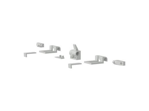 Compact mounting bracket for a camping table. The set includes a set of elements necessary to mount the camping table to the wall of a camper or caravan. The mounting bracket has sliding brackets, making it possible to use different table top widths. Rail length 950 mm.