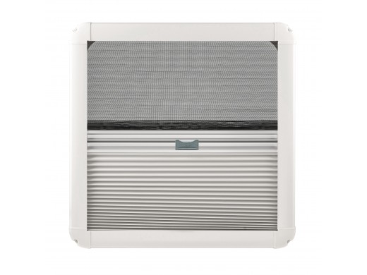 - the roller blind is covered with a thermal insulation layer on the outside, which limits the heating of the interior of the camper. The roller blind is equipped with a clip that allows you to integrate the roller blind with the mosquito net and simultaneously adjust the roller blind and the mosquito net using one hand,