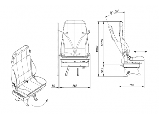 Double swivel sofa seat Fiat Ducato, Citroen Jumper, Peugeot Boxer 2006 - Right