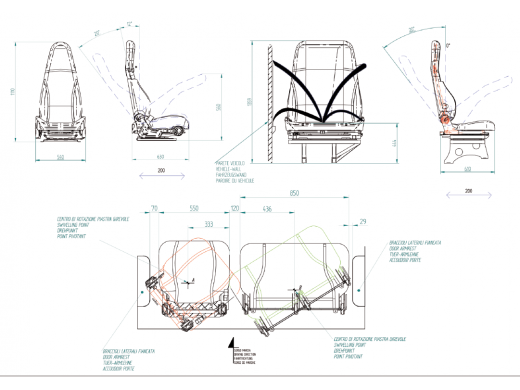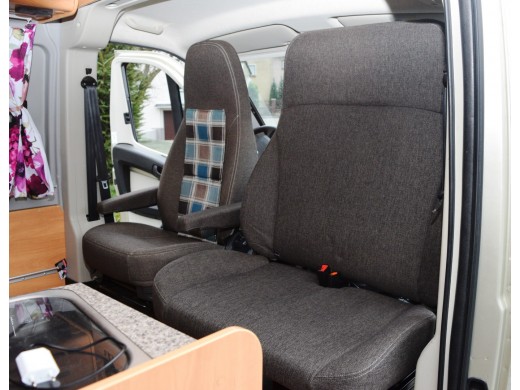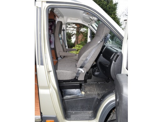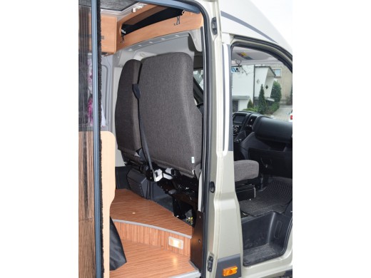 Double swivel seat replacing the right passenger seat. The bench fits all versions and models of Fiat Ducato, Peugeot Boxer and Citroen Jumper from 2006 to current models.