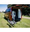 The ideal solution to this is the Van-Swing scissor mount. By installing a simple scissor mount on your existing towbar, you can use a universal bike rack. There is no need to dismantle the bikes or rack when opening the rear doors. The swivel module allows you to tilt the bicycle rack with mounted bicycles and at the same time allows you to fully open both rear door leaves
