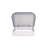 Okno dachowe dedykowane do montażu w kamperach oraz przyczepach kempingowych. Posiada podwójne, przyciemnione przeszklenie akrylowe z powłoką ochronną UV. Okno wyposażone jest w zintegrowaną plisowaną roletę, moskitierę oraz oświetlenie. Jest ciche i szczelne dzięki zastosowaniu wysokiej jakości sylikonowych uszczelek.