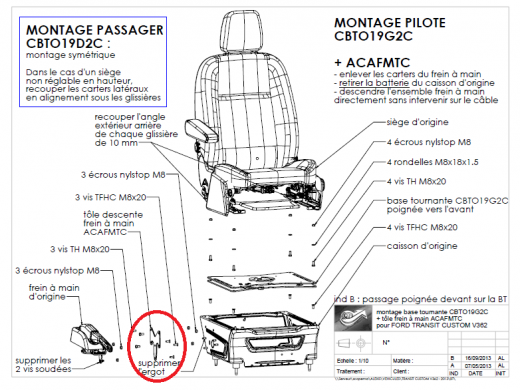 Adapter obniżający mocowanie hamulca ręcznego, tak aby nie kolidował z fotelem w trakcie obrotu. Adapter dedykowany do wszystkich wersji i modeli Ford Transit CUSTOM i Ford Transit Turneo CUSTOM V362, Ford Transit V363