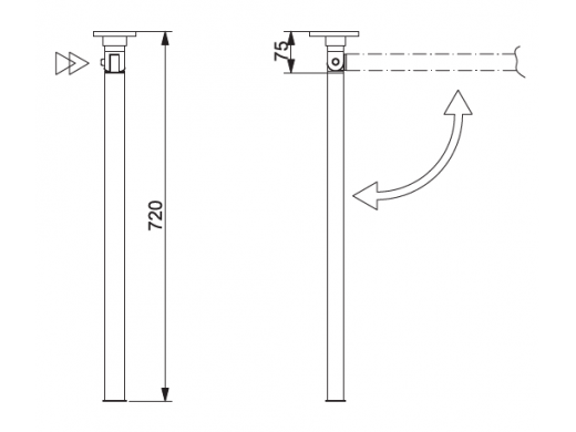 Noga przeznaczona do zastosowania w kamperach oraz przyczepach kempingowych. Noga jest wykonana z tłoczonego, anodowanego alminium i stanowi solidną podstawę do zamontowania blatu stołu. Posiada zawias umieszczony pod bazą mocowania blatu umożliwiający złożenie nogi tuż pod blatem, dzięki czemu ułatwia przenoszenie i przechowywanie stołu.