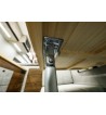 Niezwykle solidna noga przeznaczona do zastosowania w kamperach oraz przyczepach kempingowych, wykonana z tłoczonego, anodowanego aluminium. Stanowi solidną podstawę do zamontowania blatu stołu. Posiada zawias umieszczony pod bazą mocowania blatu umożliwiający złożenie nogi tuż pod blatem, dzięki czemu ułatwia przenoszenie i przechowywanie stołu. Zawias został wykonany z odlewanego ciśnieniowo aluminium, a baza blatu została wykonana z ocynkowanej, stalowej płyty, dzięki czemu konstrukcja jest niezwykle wytrzymała. Dodatkowo noga posiada teleskopową regulację wysokości w zakresie od 650 mm do 750 mm.