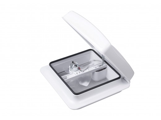 Okno dachowe wyposażone w wentylator idealne do zastosowania w toaletach i pomieszczeniach sanitarnych w kamperach oraz przyczepach kempingowych. Okno posiada przezroczystą kupułę z podwójnym, przyciemnione przeszklenie akrylowe z powłoką ochronną UV. Dodatkowo okno wyposażone jest w moskitierę oraz oświetlenie LED.